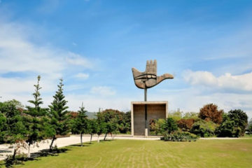 Chandigarh, the capital of the northern Indian states of Punjab and Haryana, was designed by the Swiss-French modernist architect, Le Corbusier. His buildings include the Capitol Complex with its High Court, Secretariat, and Legislative Assembly, as well as the giant Open Hand Monument. The nearby Rock Garden is a park featuring sculptures made of stones, recycled ceramics, and industrial relics.